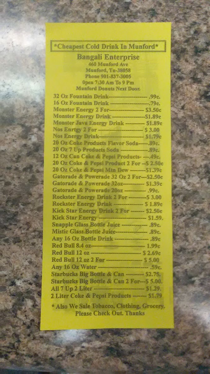 The menu pairs well with an assortment of beverages, from fresh juices to milk, soda, and energy drinks, providing a familiar and relaxed complement to the sweet and savory flavors. Whether you're stopping by for a quick breakfast or a comforting break any time of day, the food and drinks here match the easygoing, local vibe of the shop.